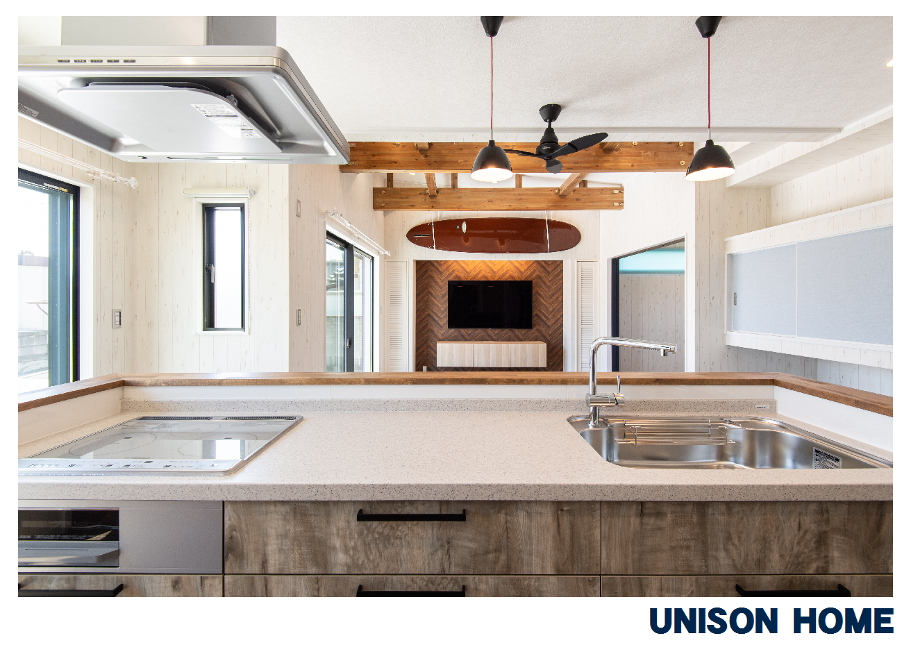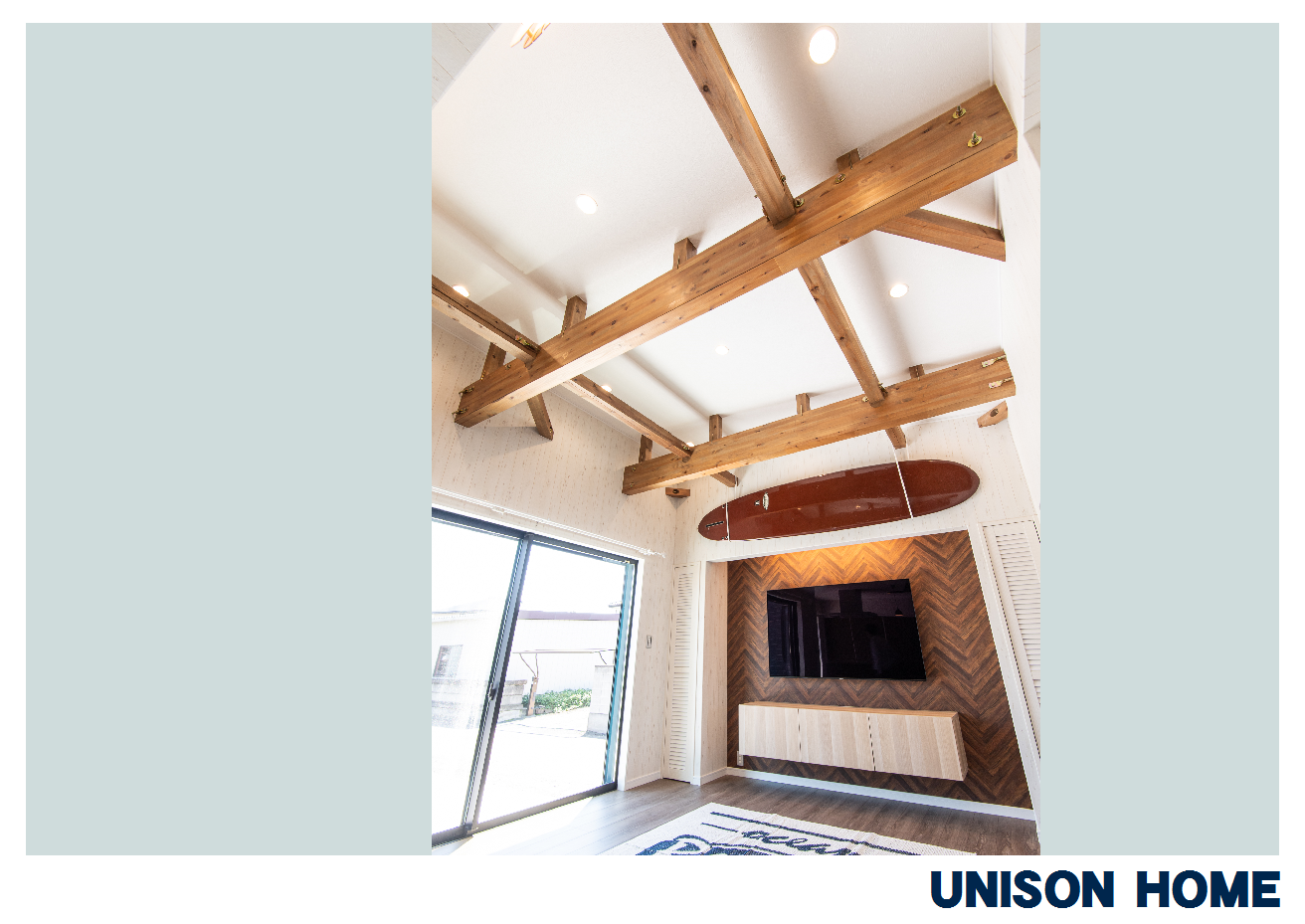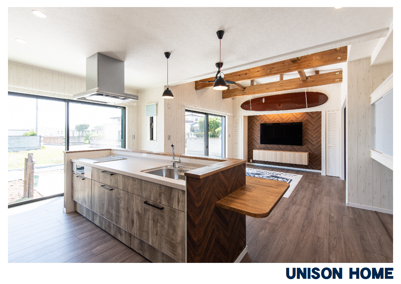 サーフィンやダイビングなど海がお好きで、他にも多彩な趣味をお持ちのお施主様の好みがたっぷりと反映された住宅です。 内装は南国リゾート地の洒落た戸建てコンドミディアムを感じるようなテイストが入ってますね。 浴室からそのまま外へ出られるバスコートは解放感もGOOD!。 外観はシックでスタイリッシュな木目調の外壁をバランス良く配置した外装。 大収納はもちろんのこと、浴室前のテラス(バスコート)や大型バルコニー、バリアフリーにも考慮した玄関前のスロープなど、機能性も満載の素敵なお家となりました。 |