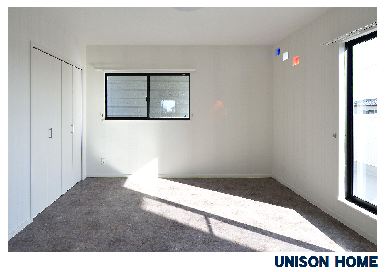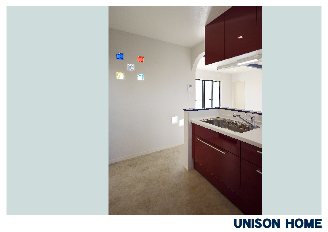 | ガラスブロックもカラフルで可愛く、随所に御施主様の色に対するこだわりがうかがえるキュートな住宅となりました。 | |