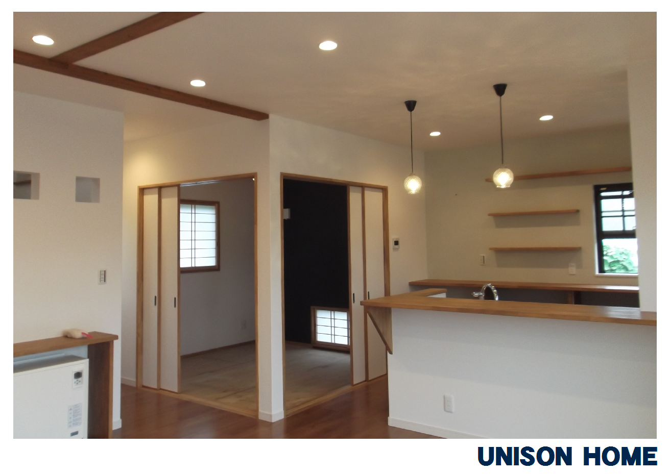 内装は白を基調に木目のアクセントが可愛い